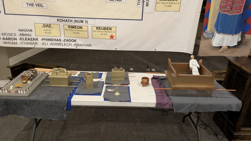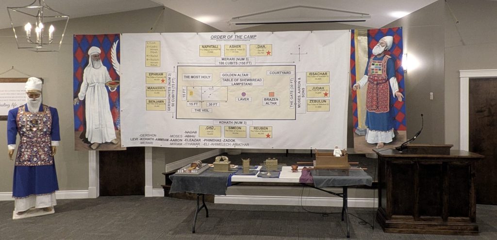 Scott MacLeod is taking up two weeks of teachings on the Tabernacle. 10 Ministry meetings accompanied by images and models created by Scott MacLeod with assistance from Hank Becker in painting various items.